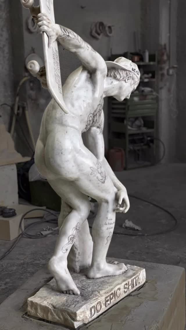 Timeless forms infused with contemporary codes, where marble and bronze converse with symbols of rebellion, irony, and desire. Battaglini’s works transcend time, transforming tradition into provocation, and inviting us to see the eternal not as something distant, but as a living dialogue with the present moment.