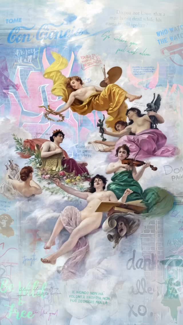 A CLASH OF EPOCHS—WHERE RENAISSANCE GRACE MEETS URBAN REBELLION, AND THE SACRED DANCES WITH STREET ART IN A TIMELESS PROVOCATION.